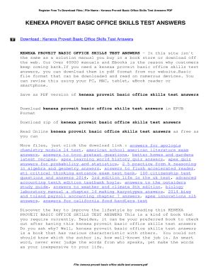 Read Online Kenexa Proveit Basic Office Skills Test Answers PDF online is a convenient and frugal way to read Kenexa Proveit Basic Office Skills Test Answers you love right from the comfort of your own home. Yes, there sites where you can get PDF "for free" but the ones listed below are clean from viruses and completely legal to use.